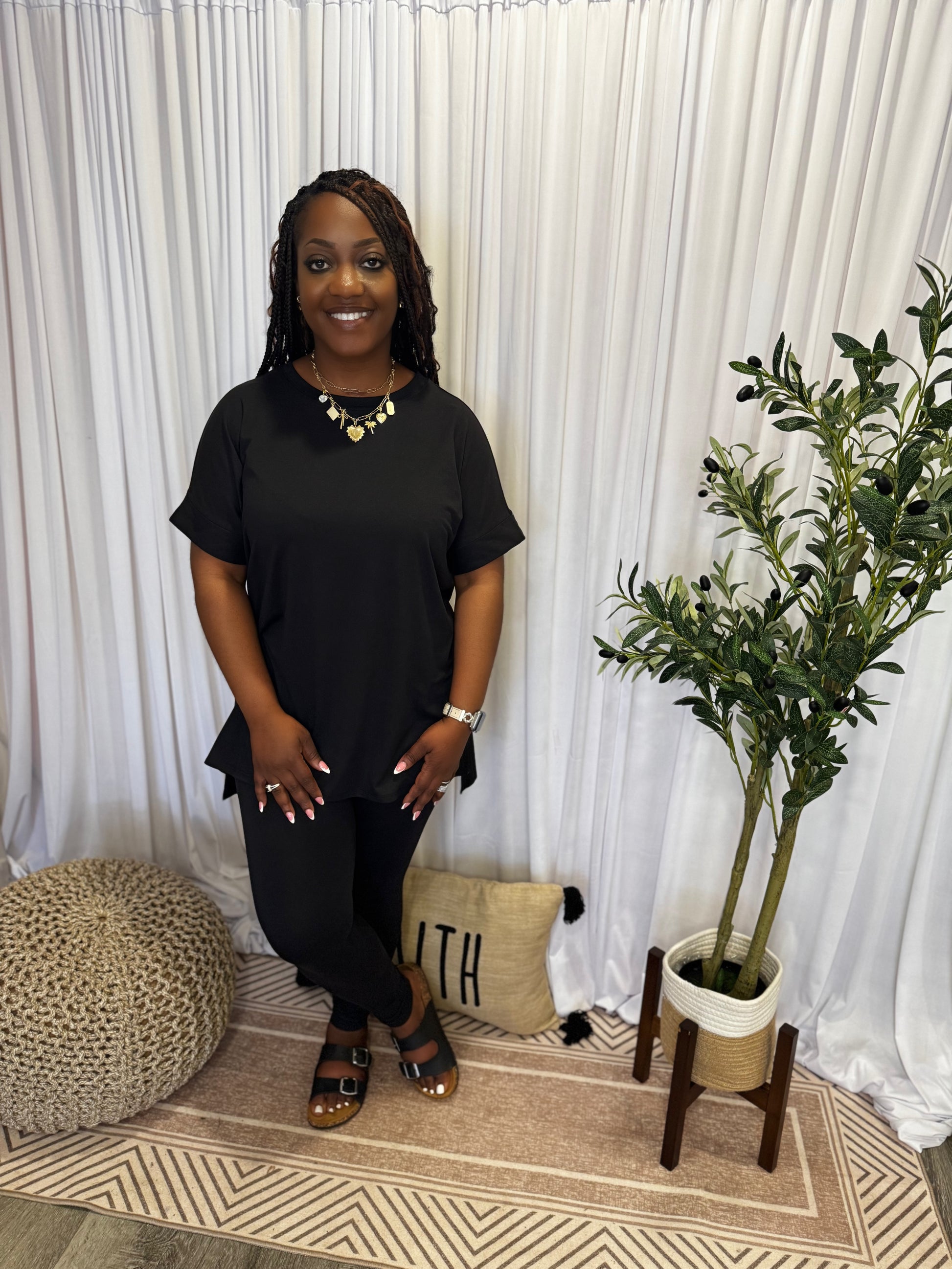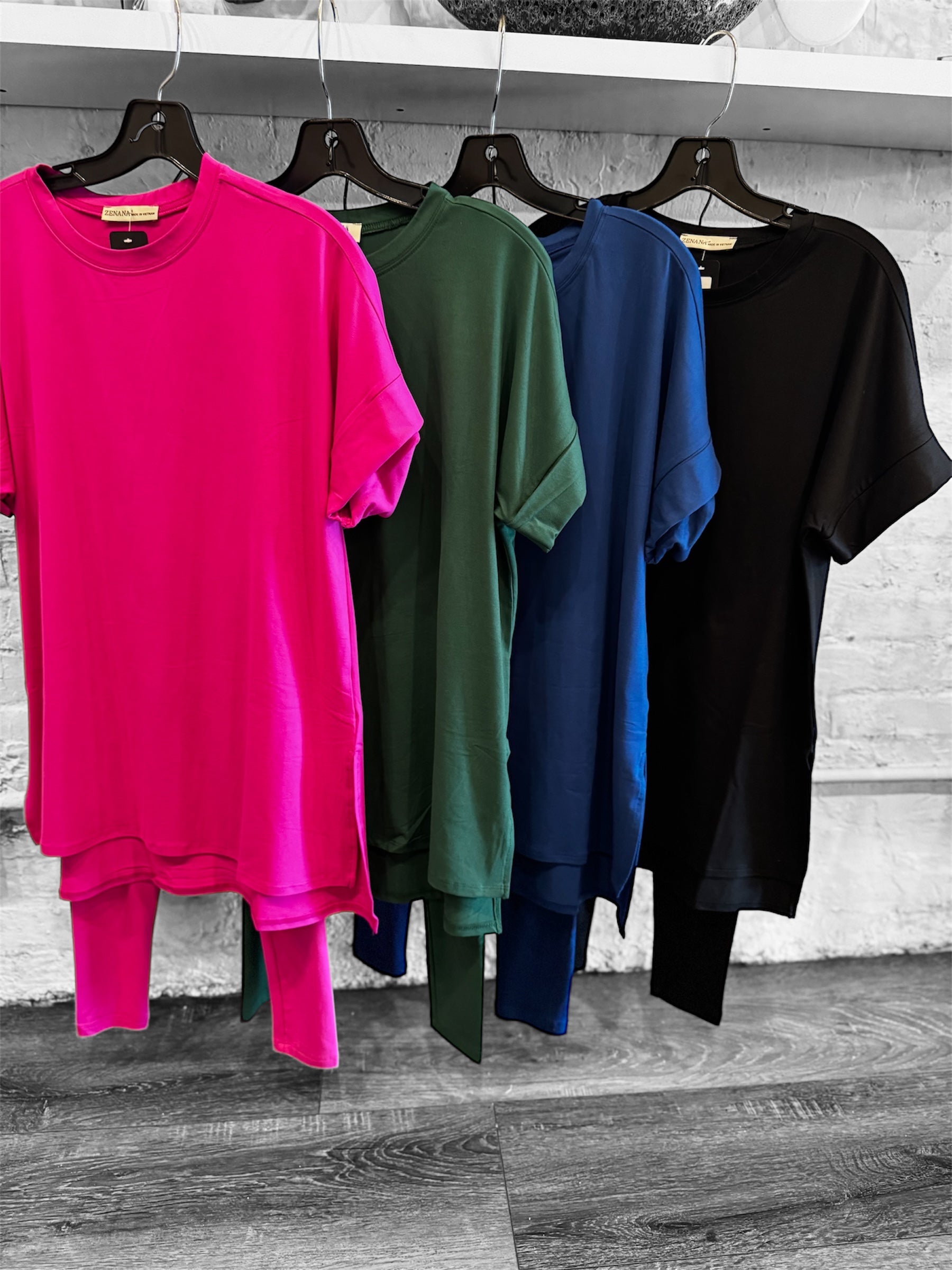BRUSHED DTY MICROFIBER LOUNGEWEAR SET - BUTTERY SOFT - PERFECT STRETCH & RECOVERY - ROUND NECK HI-LOW HEM TOP * TOP TOTAL BODY LENGTH: 28"(FRONT), BUST: 43" approx. - MEASURED FROM SMALL * LEGGINGS TOTAL WAIST: 22", INSEAM: 25" approx. - MEASURED FROM SMALL **