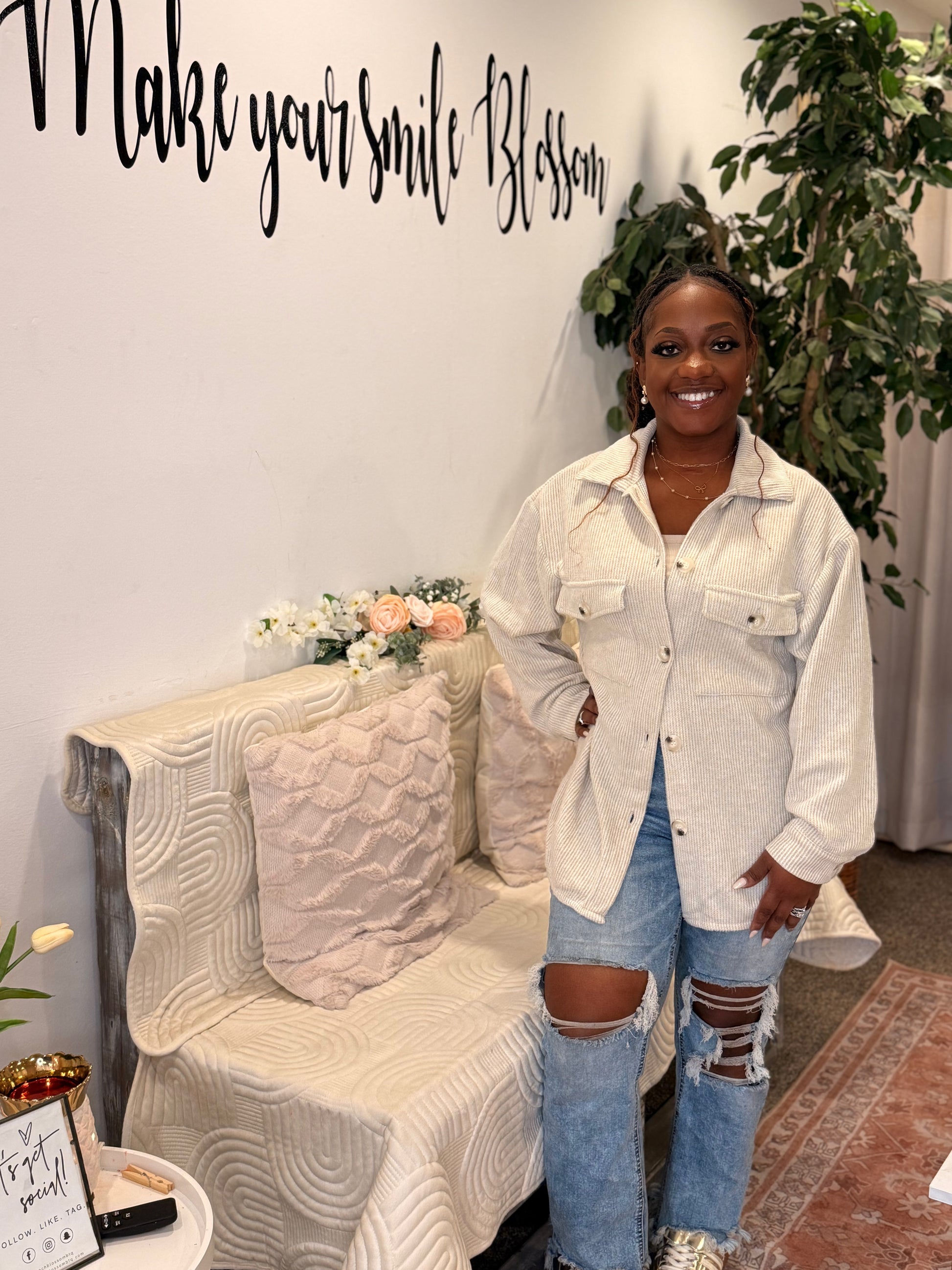 Layer up in comfort and casual style with our Fall Breeze Brushed Thermal Shacket. Crafted from a soft, cozy brushed thermal fabric, this oversized button up features a relaxed silhouette that's perfect for transitioning into cooler weather. Designed with classic chest flap pockets and subtle drop shoulders, it blends structure with laid back ease. Whether you're pumpkin patch hopping, sipping lattes at your favorite cafe, or enjoying a crisp evening walk, this versatile piece keeps you effortlessly stylish. Pair it with jeans and ankle boots for the ultimate fall look