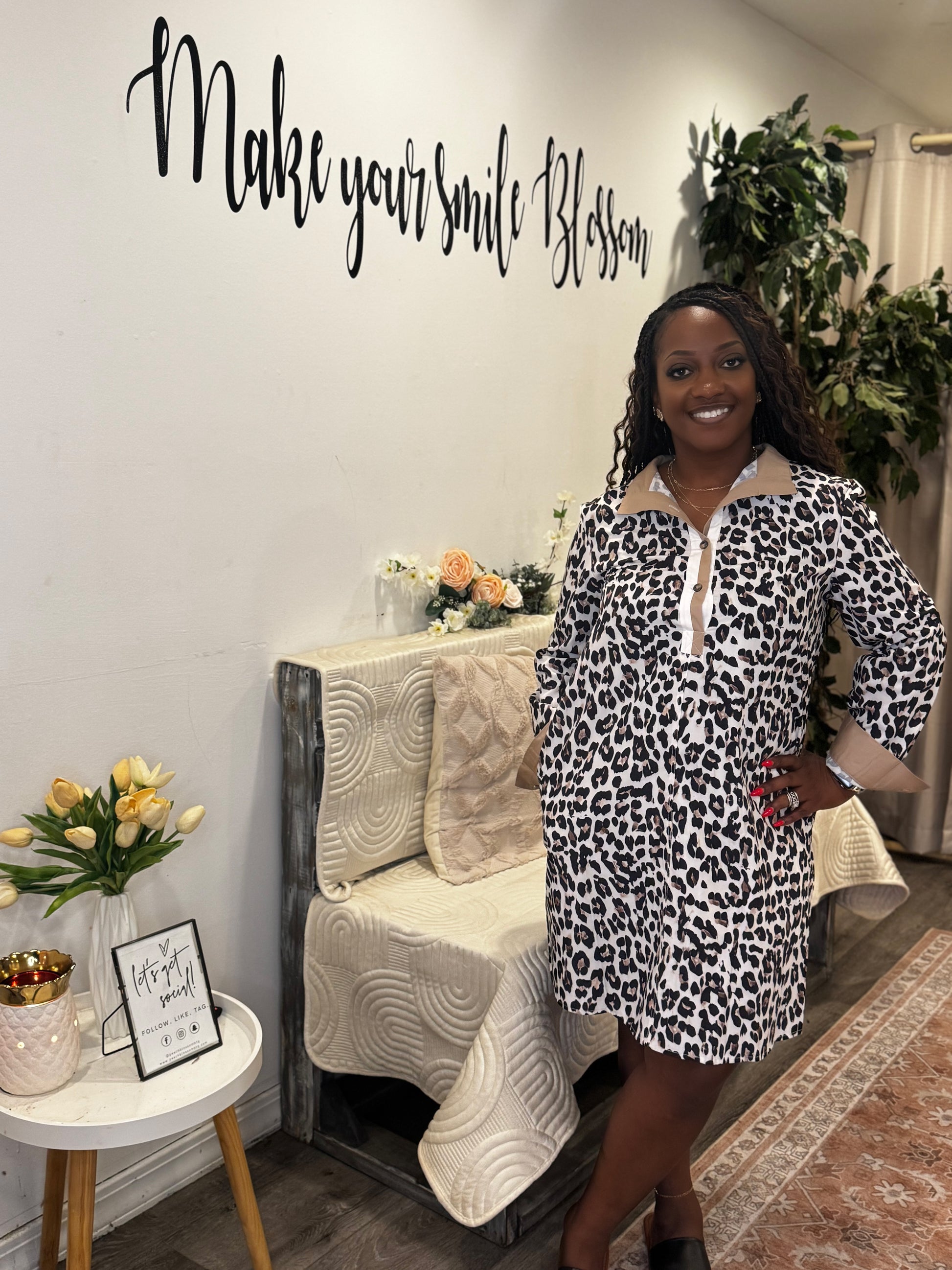 SUMMER DRESSES/FLORAL/PASTEL/SUNDRESS Stand out in style with our leopard print dress, featuring a vibrant mix of colors and patterns that create a unique and eye-catching look. This dress boasts a chic collar and buttons the front, adding a touch of sophistication to the playful leopard print and patchwork design. The flowy silhouette of this mini dress offers a comfortable and flattering fit, perfect for both casual outings and special occasions. Embrace the trend of long sleeves with this versatile piece that can be easily styled up or down to suit your individual fashion sense.