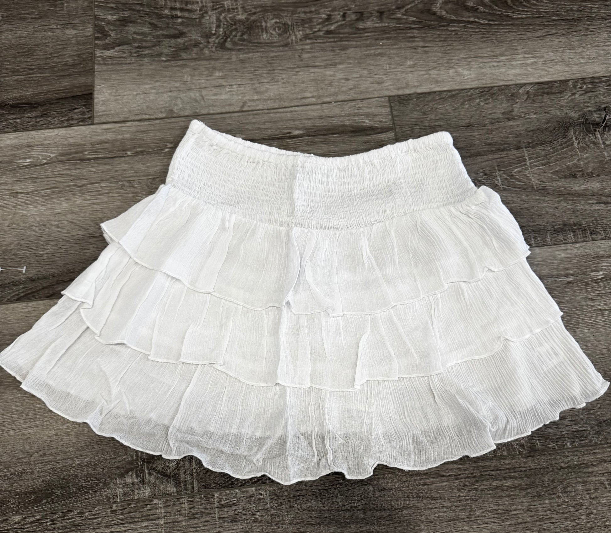 This cute mini skort features ruffled tiers and a elastic waistband. Lightweight, breathable fabric this skirt is perfect for those seeking comfort. DETAILS: - Elastic Waistband - Unlined - Smocked Waist |