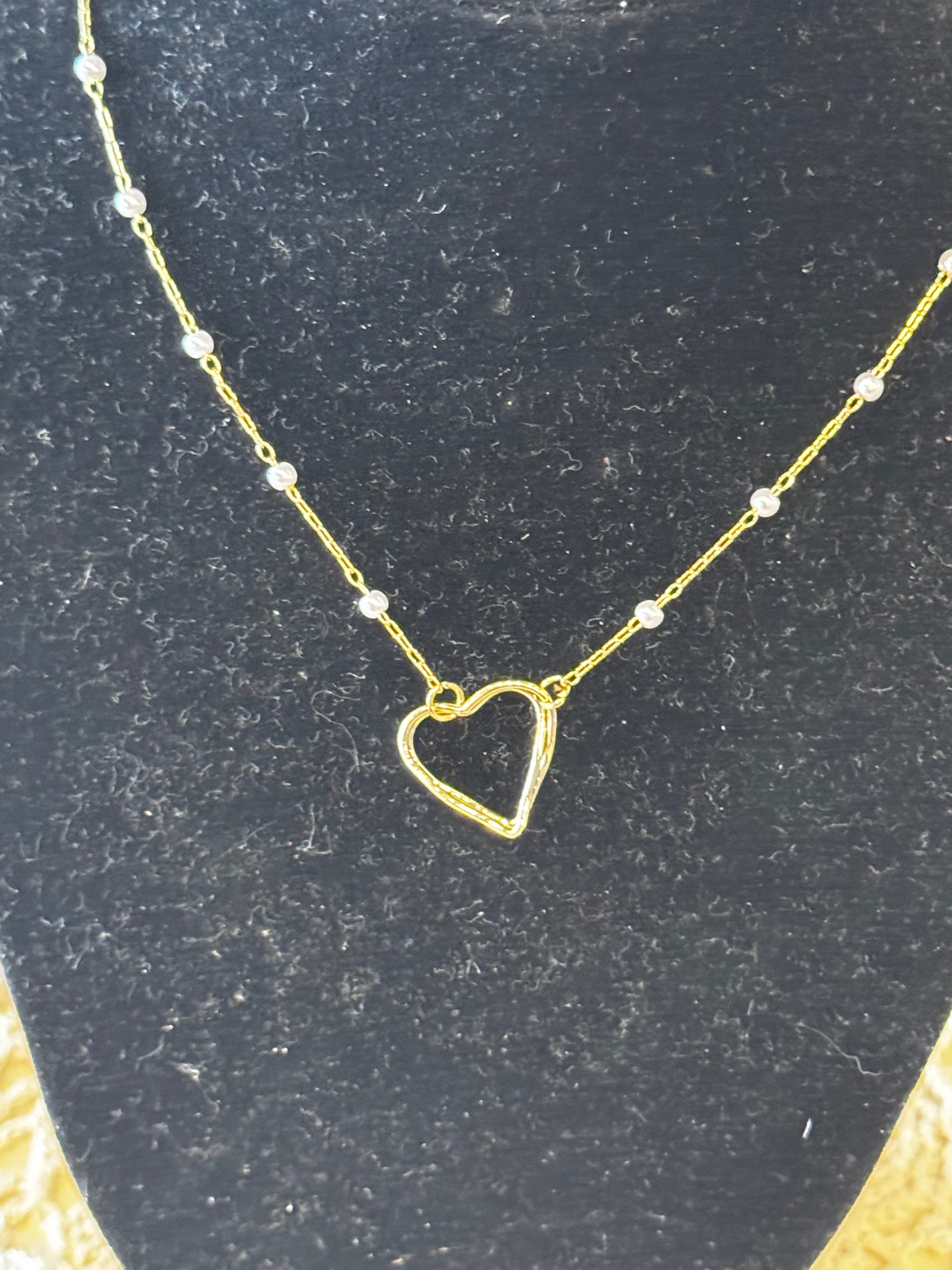 WHITE PEARL STATION OPEN HEART PENDANT NECKLACE IN GOLD-TONE METAL LENGTH: 15" EXTENSION: 3" DROP: 0.5" ROMANTIC CHIC SWEETHEART STYLE POLISHED COSTUME JEWELRY LIGHTWEIGHT GLOSSY DELICATE SHINY SMOOTH BALANCED FEMININE FIRST CRUSH GESTURES SWEETHEART GIFT BAGS GALENTINE'S FAVORITES TWEEN TREASURES CHOKER NECKLACE PRINCESS NECKLACE OPEN HEART DETAIL PEARL STATION DESIGN CABLE CHAIN ACCESSORY MUST HAVE TRENDY STYLE STATEMENT LOOK GIFTABLE TOUCH DAILY PIECE BOUTIQUE ACCESSORY BUYERS SWEET GIFT SHOPS TEEN FASHION RETAILERS EVERYDAY STYLE STOCKISTS STYLE LOVERS STUDENTS BLOGGERS GIFT SHOPPERS FASHION ENTHUSIASTS CASUAL DRESSERS INFLUENCERS YOUNG TREND FOLLOWERS VALENTINE'S BRUNCH SCHOOL EVENTS GIFT EXCHANGE BIRTHDAY CELEBRATION DATE NIGHT GIRLS NIGHT OUT